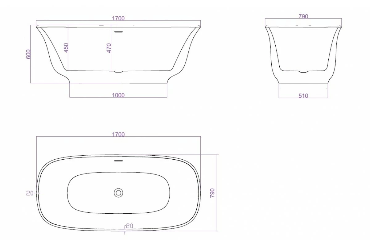 * Waste hole locates in the Center of the bath